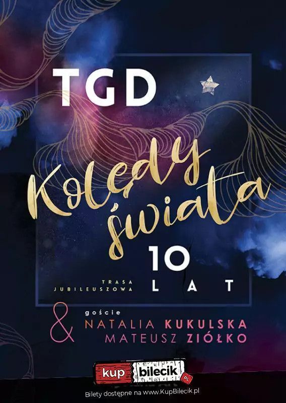 Usłyszymy najważniejsze utwory z trzech albumów cyklu "Kolędy Świata" - od "Kolędy Maryi", przez niezwykłą "Noel", aż po kojącą "Kołysankę Józefa". Nie zabraknie także mniej znanych perełek, które zabiorą słuchaczy w niezwykłą podróż po całym świecie. Każda pieśń to odrębna opowieść, wzbogacona o znakomitą sekcję rytmiczną, rozbudowane harmonie chóru i porywające partie solowe zaproszonych artystów. TGD pozostaje wierne swojej renomie: na żywo emanuje potężną energią, a jednocześnie niesie przesłanie nadziei i wdzięczności. Kolędowe przeboje nabierają tu nowego blasku - w wielogłosowych kulminacjach pulsuje gospel, w delikatnych fragmentach pobrzmiewa soul, a instrumentalne improwizacje dodają współczesnego brzmienia. Ten wieczór to nie tylko koncert, lecz świąteczne spotkanie pełne modlitwy i radości, wspólne śpiewanie refrenów, które na dobre wpisały się w bożonarodzeniową tradycję tysięcy polskich domów. Dołącz do jubileuszowego koncertu "Kolędy świata" i pozwól, by muzyka TGD wraz z Natalią Kukulską i Mateuszem Ziółko otuliła Cię ciepłem, zachwyciła rozmachem i zainspirowała do dzielenia się dobrem.