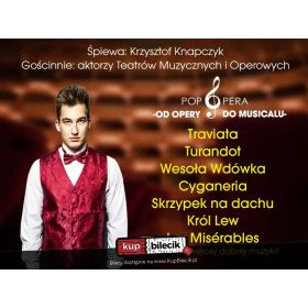 bilety: Pierwsza na świecie Pop Opera - jedyny taki projekt w Polsce! Spektakl, który przeniesie Cię w świat emocji, ludzi pełnych pasji i niezapomnianych dźwięków. Zapraszamy na muzyczne widowisko, które zabierze Państwa w niezwykłą podróż - od wzruszających arii operowych, przez porywające hity musicalowe, aż po kultowe utwory muzyki rozrywkowej. Pop Opera - Od Opery do Musicalu to wydarzenie, które za każdym razem zaskakuje czymś nowym. Muzyka połączy pokolenia. Najpiękniejsze arie operowe i ponadczasowe przeboje musicalowe w mistrzowskim wykonaniu solistów Teatrów Muzycznych i Operowych. Na scenie pojawią się artyści, którzy oczarowali publiczność na światowych scenach - w tym tenor Krzysztof Knapczyk, znany z niezwykłej ekspresji i głosu, który zapada w pamięć. Pop Opera - od Opery do Musicalu artyści: Krzysztof Knapczyk wraz z solistami Teatrów Muzycznych i Operowych oraz Krzysztof JarosNajpiękniejsze arie operowe świata oraz największe hity z polskich i amerykańskich musicali. Śpiewa Krzysztof Knapczyk wraz z solistami Teatrów Muzycznych i Operowych, a całość dodatkowo zostanie wzbogacona tanecznie przez naszych artystów i… gościa specjalnego! Bilety do nabycia na: KupBilecik.pl |