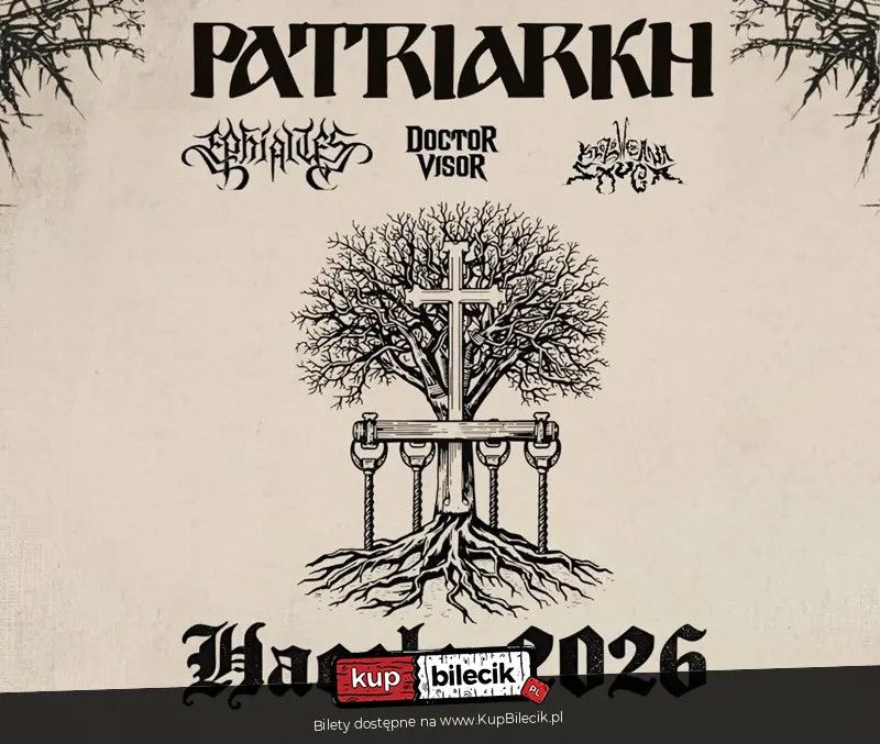 | Koncert Patriarkh/ Królówczana Smuga/ Ephialtesdodano 2025-11-27 19:15:22 Po wielkim sukcesie trasy 2025, zespół Patriarkh ponownie rusza na black metalowy podbój naszego kraju. Tym razem towarzyszyć będzie im wspaniała Ignea, jednoosobowy zespół pieśni i tańca Królówczana Smuga, oraz Ephialtes i Doctor Visor. Królówczana Smuga jednoosobowy zespół pieśni i tańca Królówczana Smuga został powołany do życia przez pochodzącego z Biłgoraja Adama Piętaka. Muzyczna narracja prowadzona jest przez zdeformowane dźwięki gitary, przypominające stare, zakurzone i zaniedbane instrumenty, znalezione na strychu pradziada lub odkopane w ukrytej w lesie mogile. Pojawia się też głos, daleki od "białego śpiewu", zbliżony do głosu sponiewieranego włóczęgi. Patriarkh artyści: Zespół PatriarkhPolski projekt muzyczny powstały w 2015 roku, grający muzykę z gatunku black metal. Tematyka liryczna utworów nawiązuje do wyznania prawosławnego. Bilety do nabycia na: KupBilecik.pl |
